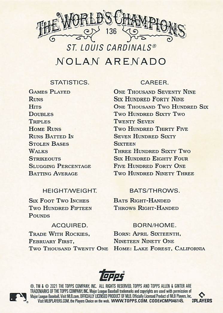 2021 Topps Allen & Ginter Silver Portrait Nolan Arenado #136
