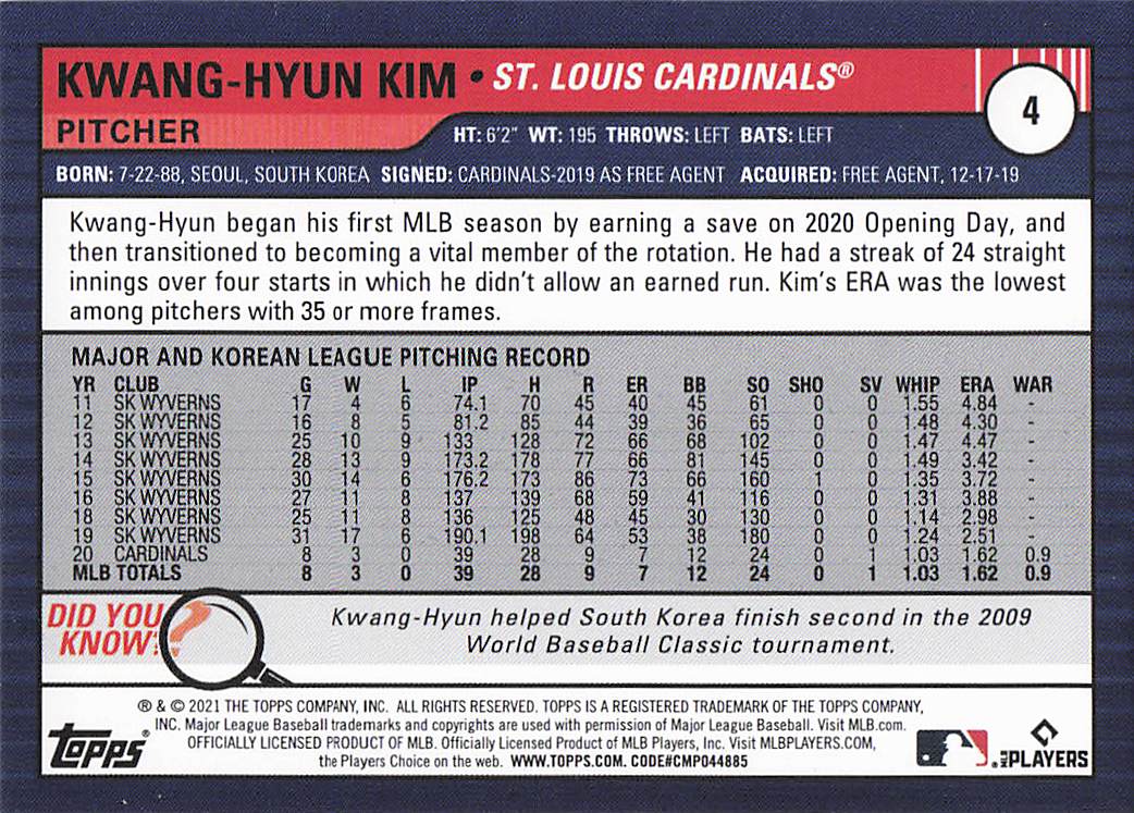 2021 Topps Big League Orange Kwang-Hyun Kim #4