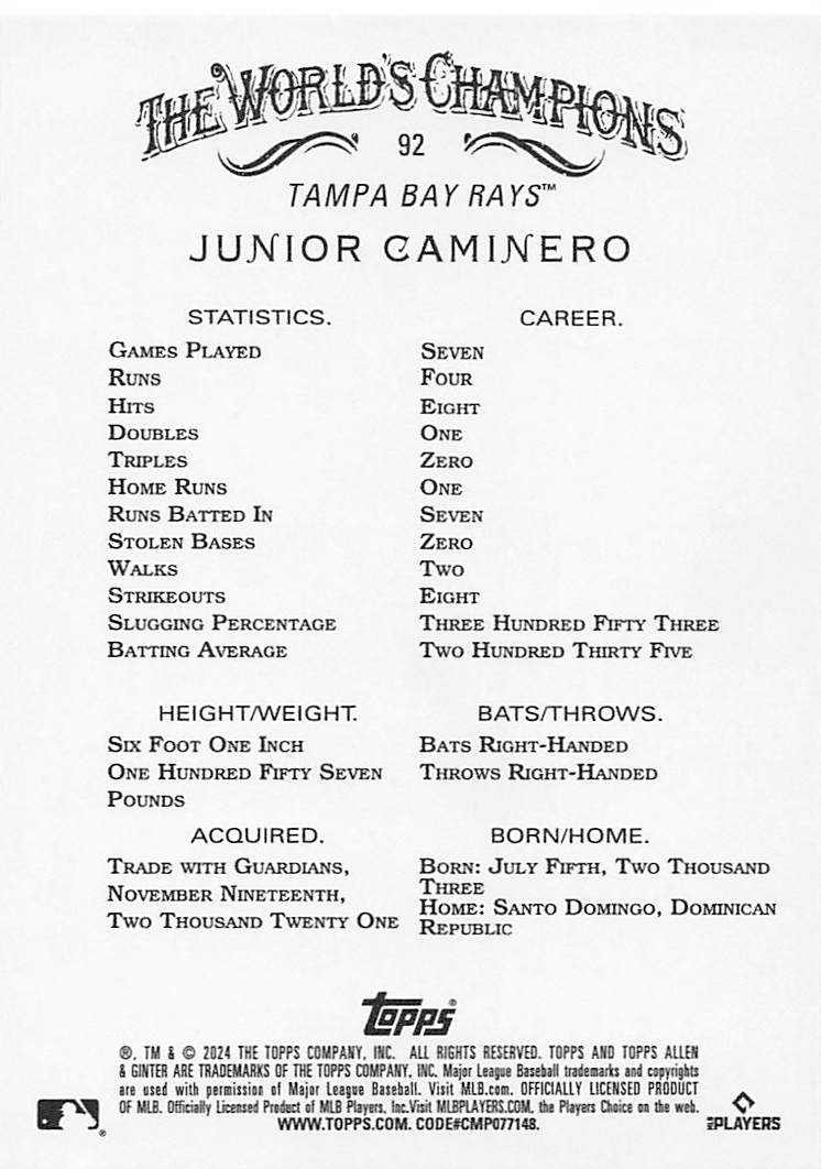 2025 Topps Chrome Baseball Future Stars Junior Caminero #FS-18