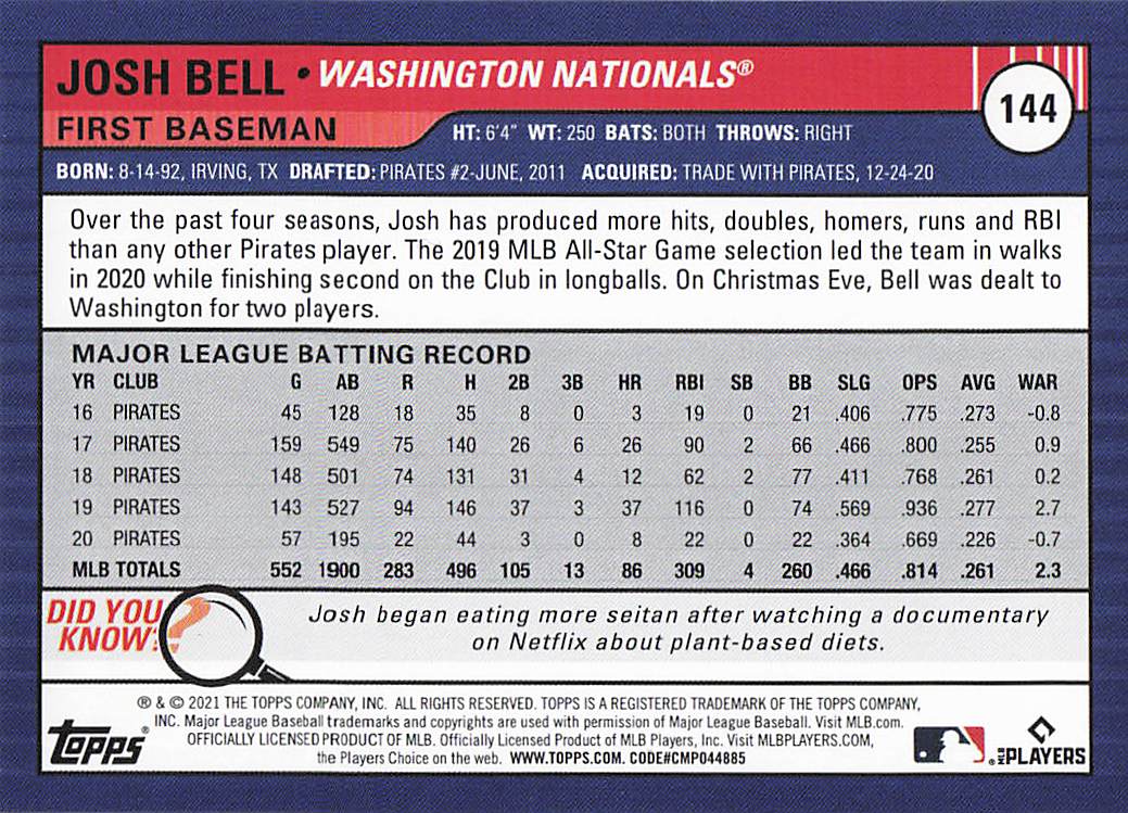 2021 Topps Allen & Ginter Silver Portrait Josh Bell #5