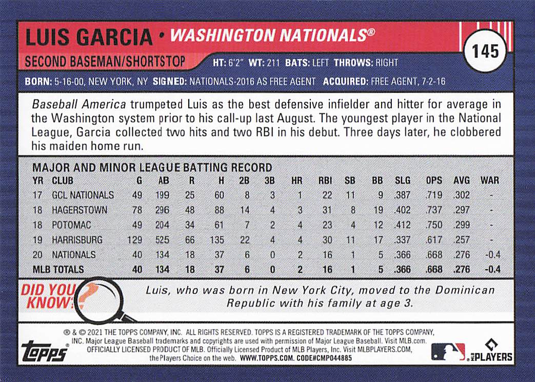 2021 Topps Big League Orange Luis Garcia #145 RC
